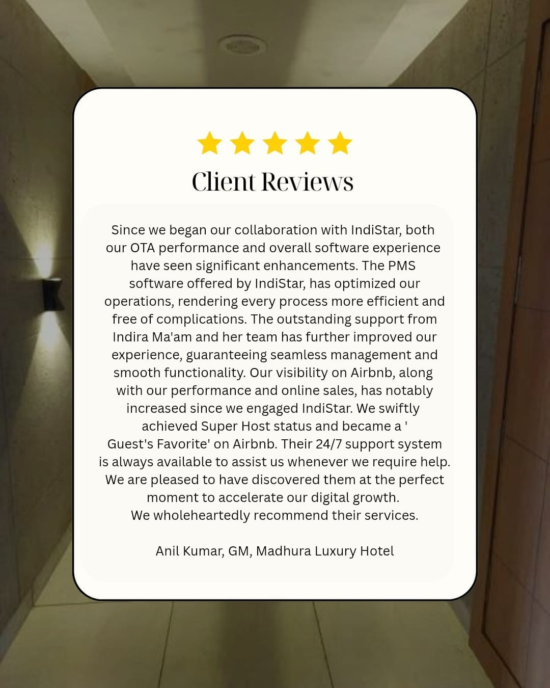 IndiStar's cutting-edge technologies and strategic solutions help hoteliers to seamlessly organize their hotels' internal operations and online bookings. Starting from professional Photoshoots, to creating your Digital Portfolio, from Hotel PMS to Online Distributions, from dynamic pricing to managing your Social Media, from customized Booking-Engine to Sponsored Google Hotel-Ads, our All-in-one Hotel Management Programs empower the hotels to optimize revenue across all aspects of their businesses.